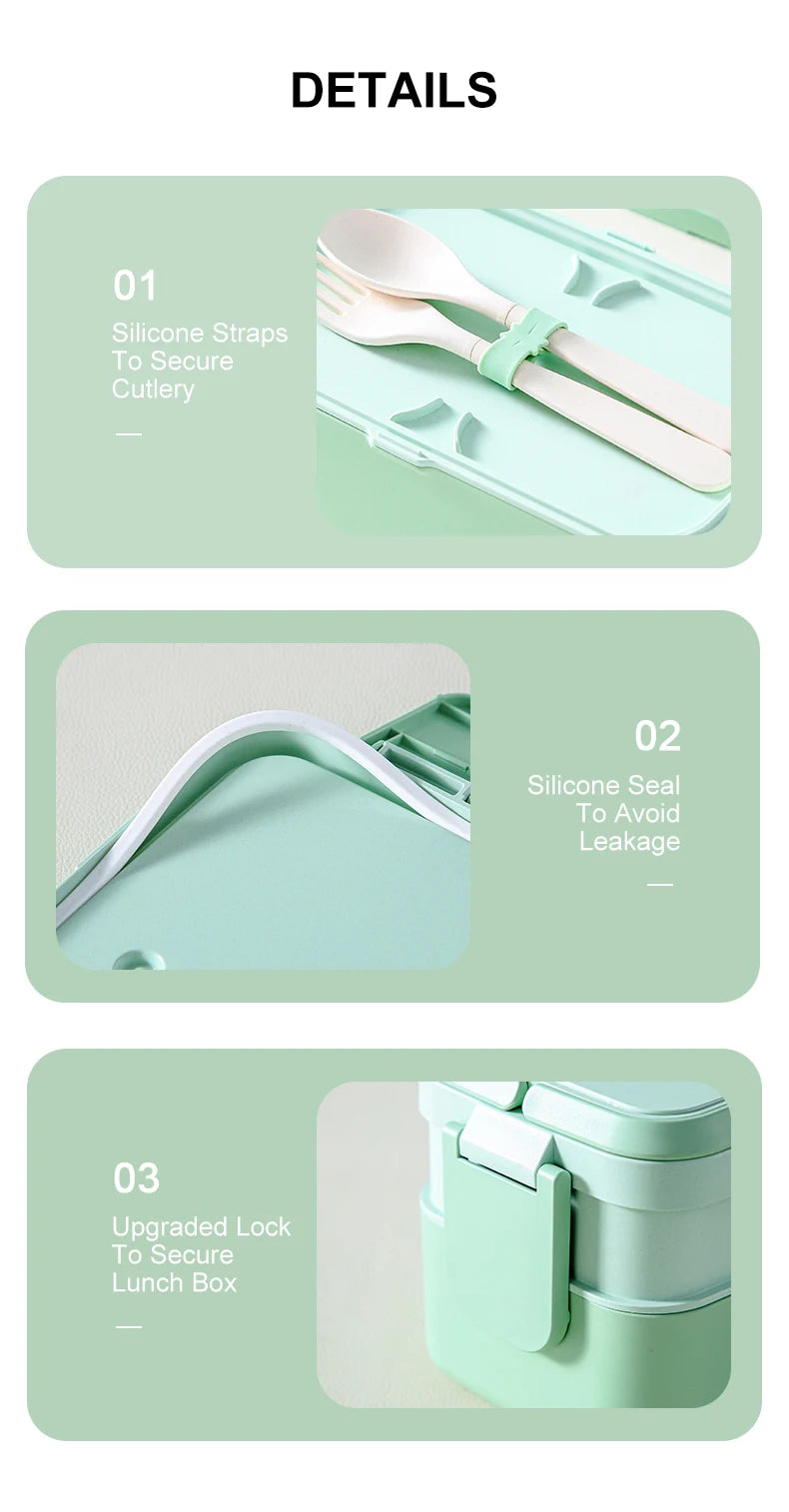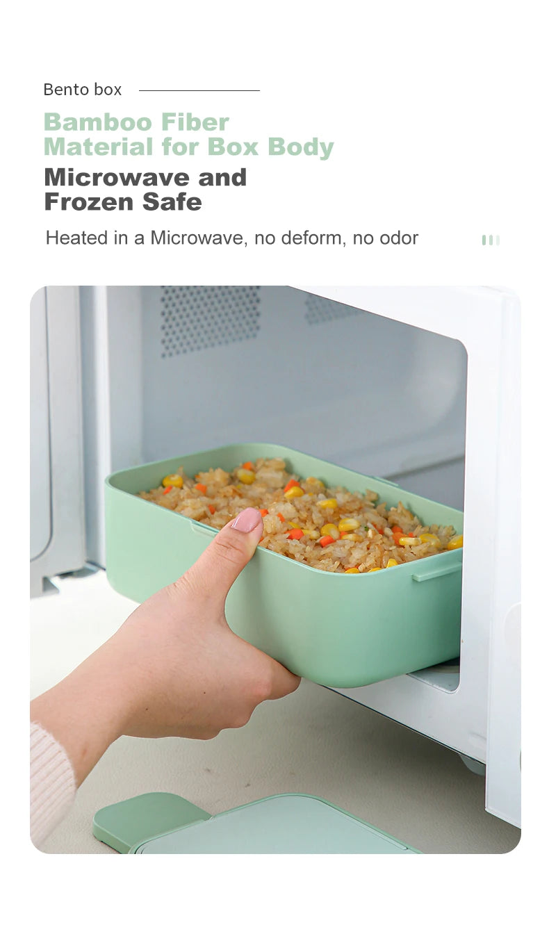 Eco-Friendly Bamboo Fiber Lunch Box Microwave Leakproof Bento Container for School/Office/Picnic Portable Food Storage Container